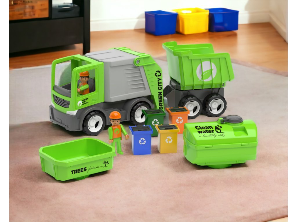 • MultiGO City set obsahuje: auto - tahač, přívěs, 4 vyměnitelné nástavby - popelářskou nástavbu, rozebíratelnou a vyčistitelnou cisternu, funkční sklápěčku, valník, 4x otevíratelné popelnice na tříděný odpad a dvě figurky Igráček.