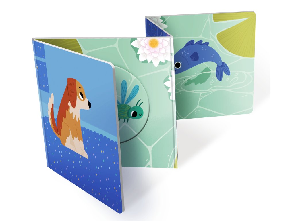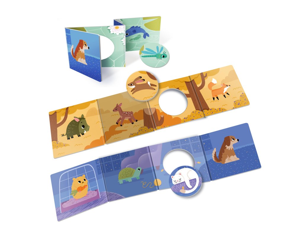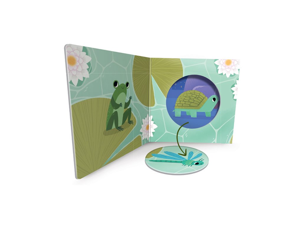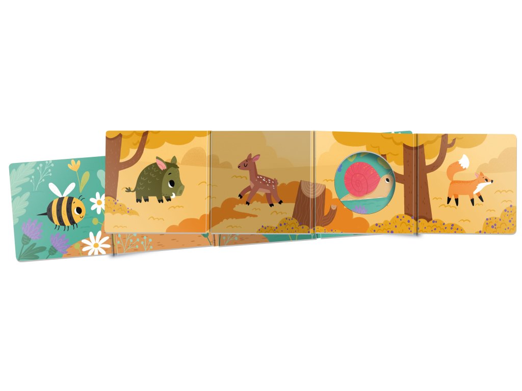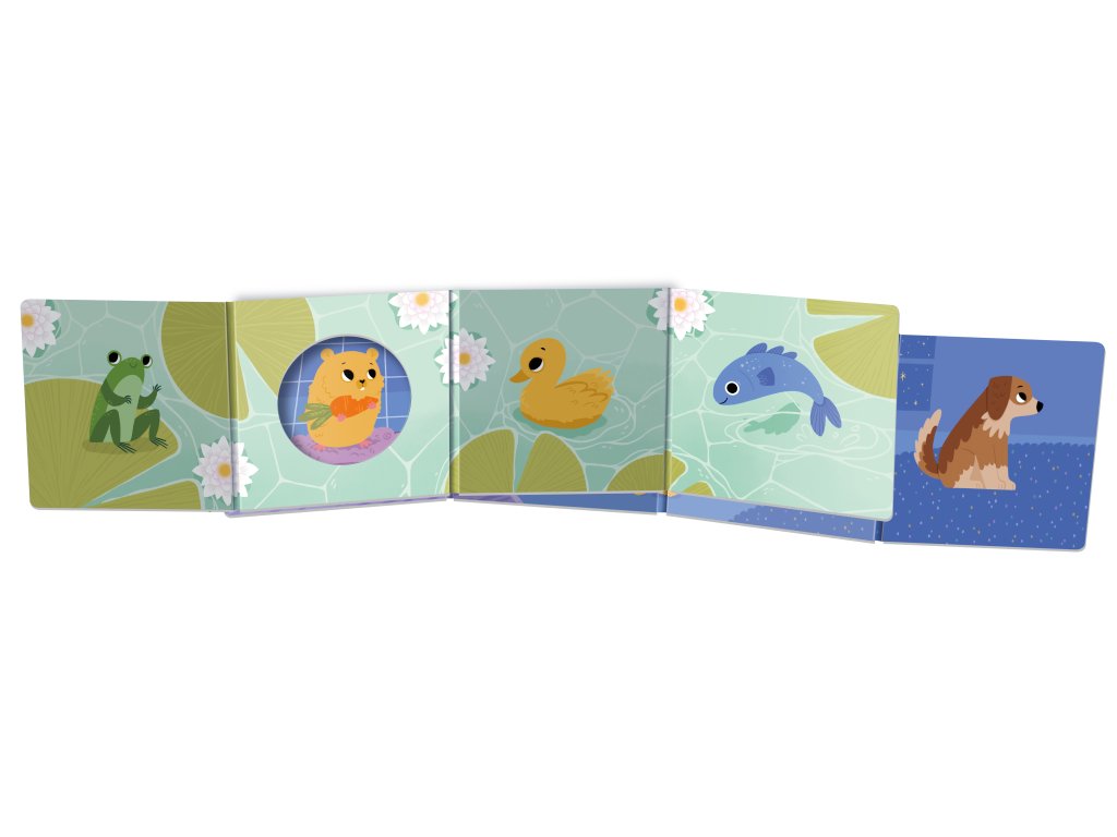 Tři krásně ilustrovaná leporela se zvířátky a vkládacími žetony, které rozvíjejí fantazii, jemnou motoriku a poznávání přírody. Děti zkoumají prostředí jako louku, rybník či les a objevují překvapivé „KUK efekty“ s každým posunutím stránky.