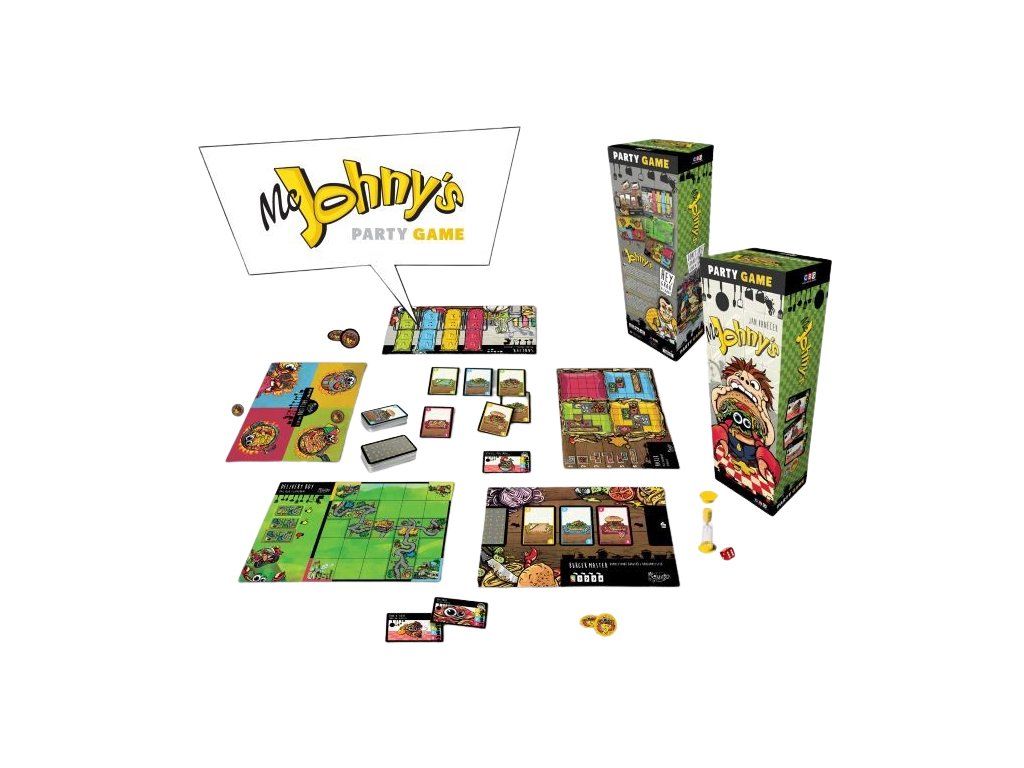 McJohny's je párty desková hra pro 3-6 hráčů na 20 minut. Můžete zapomenout na přežitky, jako je čekání na tah, v tomto občerstvení všechno probíhá rychle a zběsile. Zatímco vy otáčíte kraby na grilu, váš kamarád je rve do housek a snaží se nezapomenout na okurku, poslíček mezitím už na parkovišti startuje babetu, jen aby měli zákazníci objednané kraby včas na talíři. Díky silným odborům každá směna trvá jen minutu, takže se musíte pekelně snažit, abyste uspokojili všechny čtyři zákazníky, kteří se doma těší na krabí lahůdky.