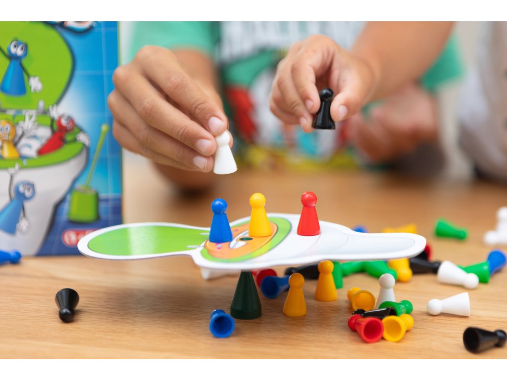 S touto stolní rodinnou hrou se nikdo nudit nebude. Trénuj jemnou motoriku a trpělivost. Tvůj úkol je jednoduchý. Na originální herní plán představující záchod skládej malé figurky tak, aby se nepřevrhnul a tys do něj nespadnul.